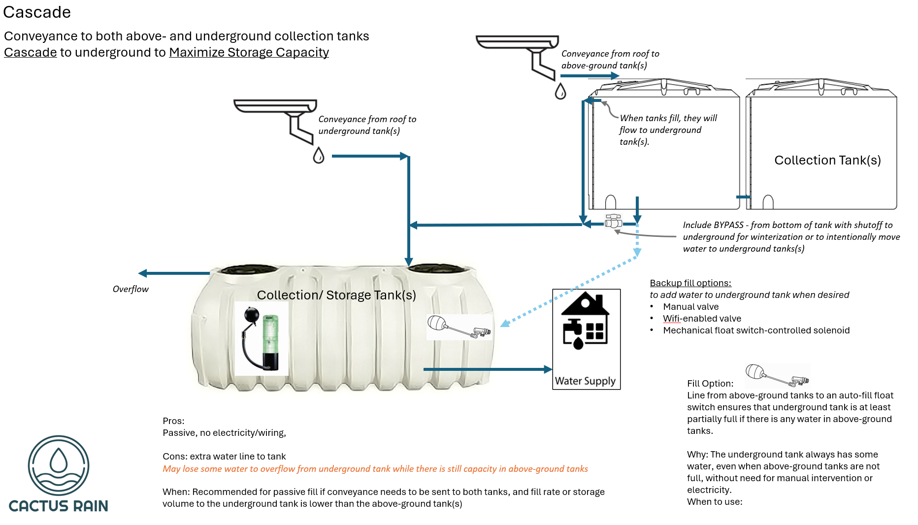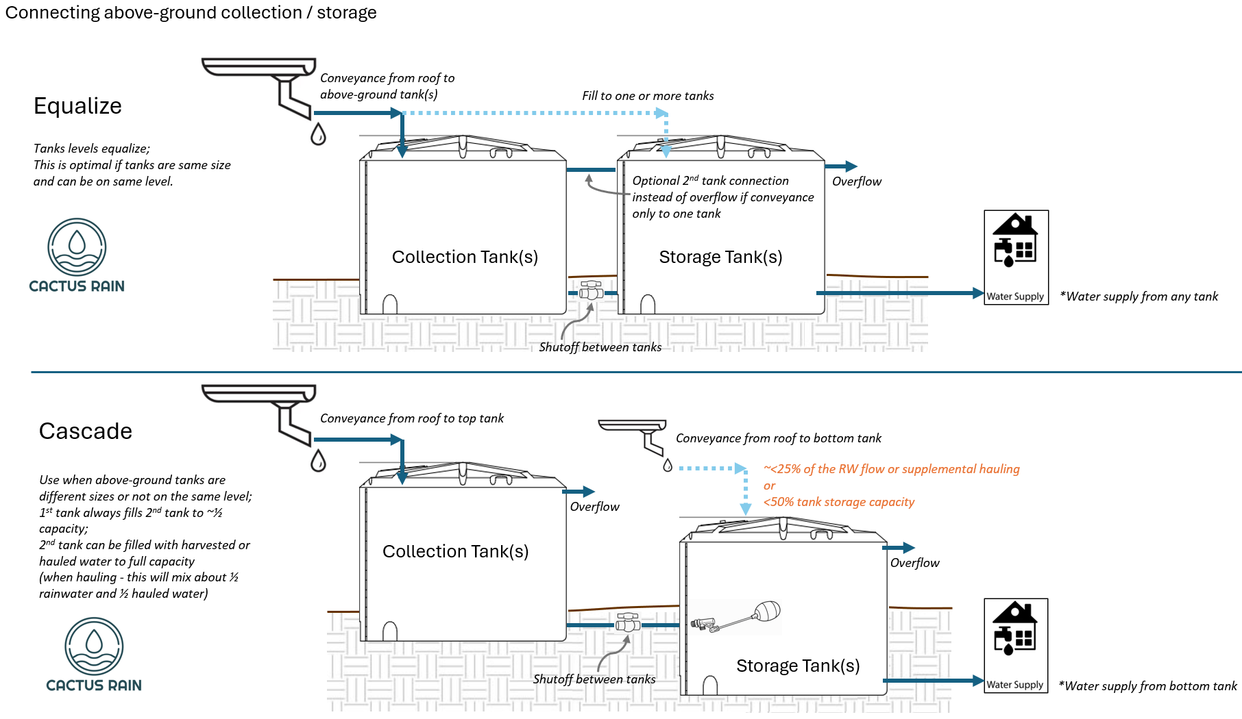 To add capacity to your rainwater harvesting system, you will likely consider multiple tanks. There are myriad ways to connect tanks.