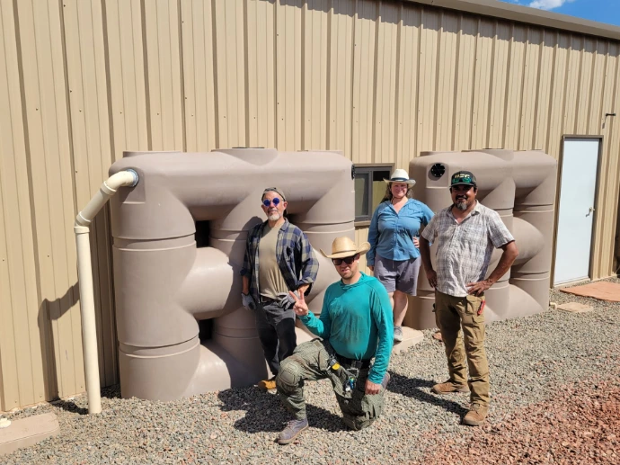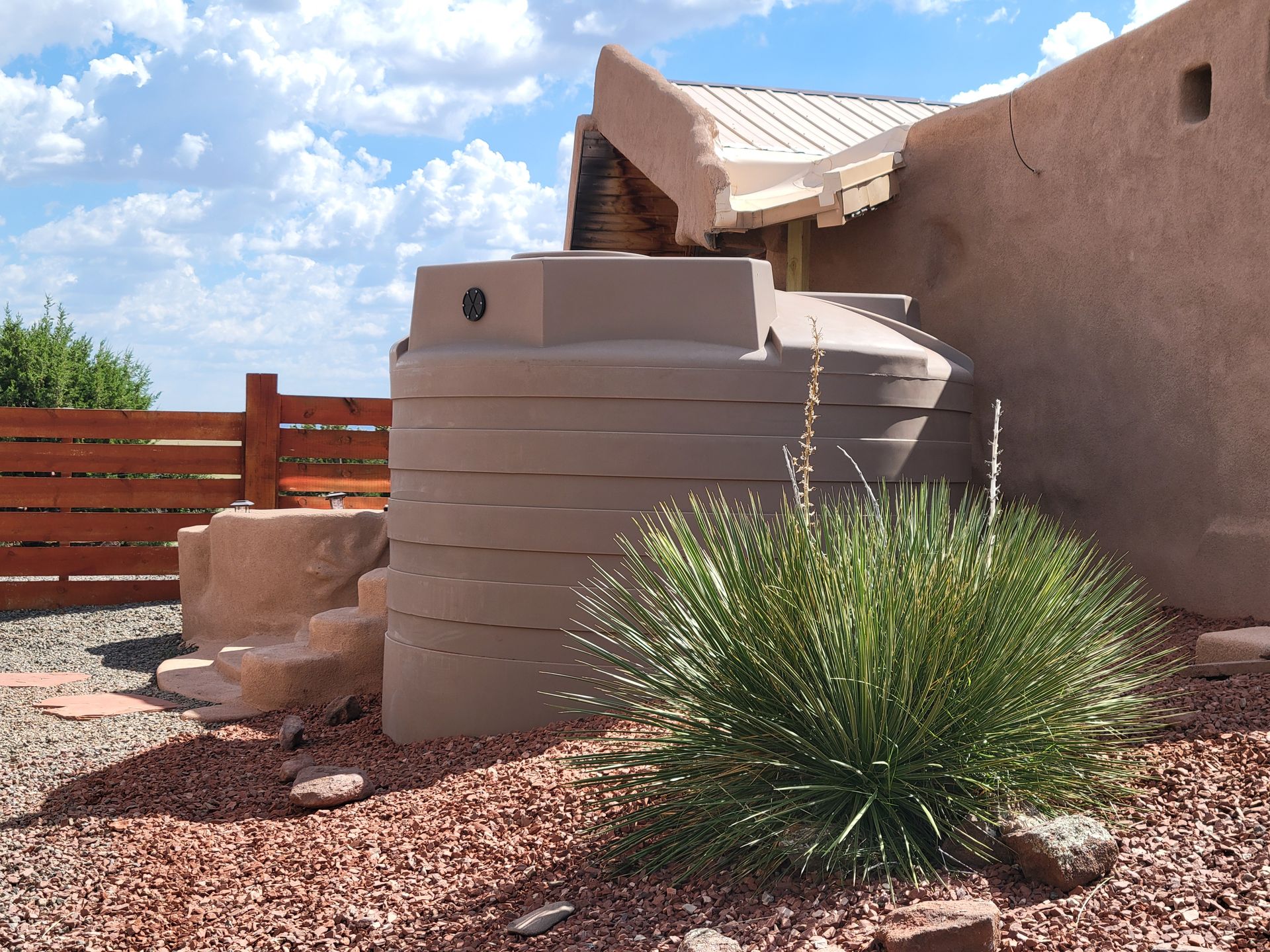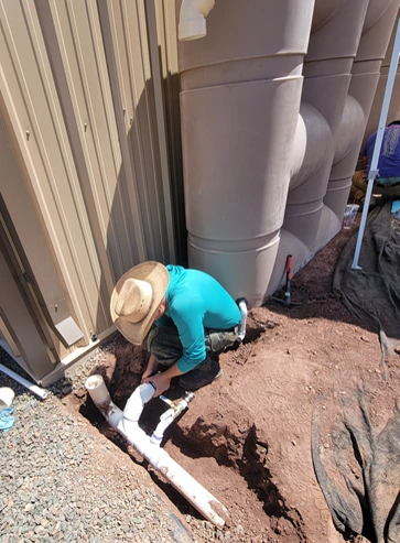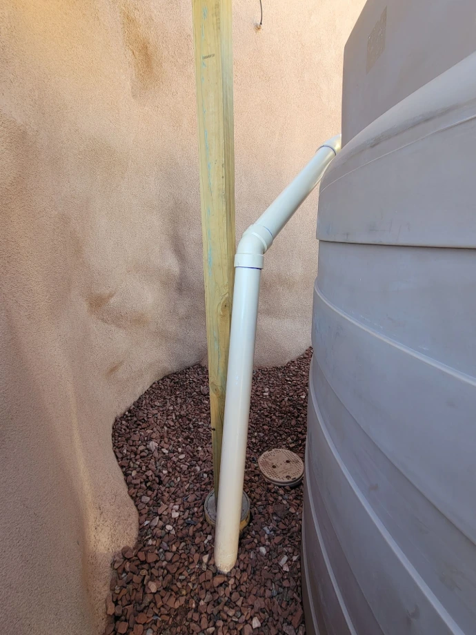 This homeowner initially contacted Cactus Rain to evaluate and replace a failing metal cistern she and her husband installed decades ago. The home uses rainwater, exclusively, for domestic water supply. After reviewing their rainwater harvesting potential, we installed additional tanks to increase their storage capacity. The homeowner was also inspired to add a thriving landscape, but wanted to reserve the high-quality rainwater for in-home use. So, we suggested adding a laundry-to-landscape (L2L) greywater irrigation system. It was a perfect combination!