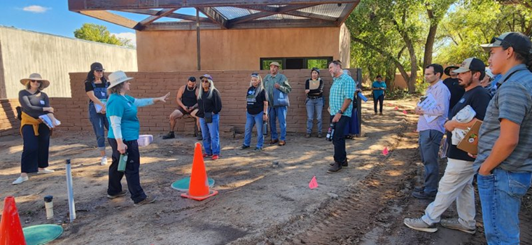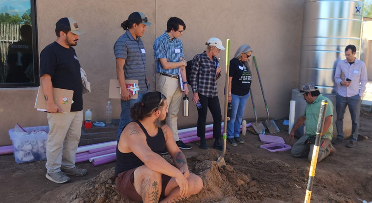 This hands-on, site-specific workshop guided experienced practitioners from New Mexico’s sustainable agriculture community through the practical and ecological dimensions of active and passive rainwater harvesting and graywater reuse to enhance food production, support ecological regeneration and build long-term climate resilience. Participants included members from La Cosecha /Agri-Cultura Network, Los Jardines Institute, Center for Social Sustainable Systems (CESSOS), La Semilla Project, Southwest Organizing Project (SWOP) and Yes!Housing.