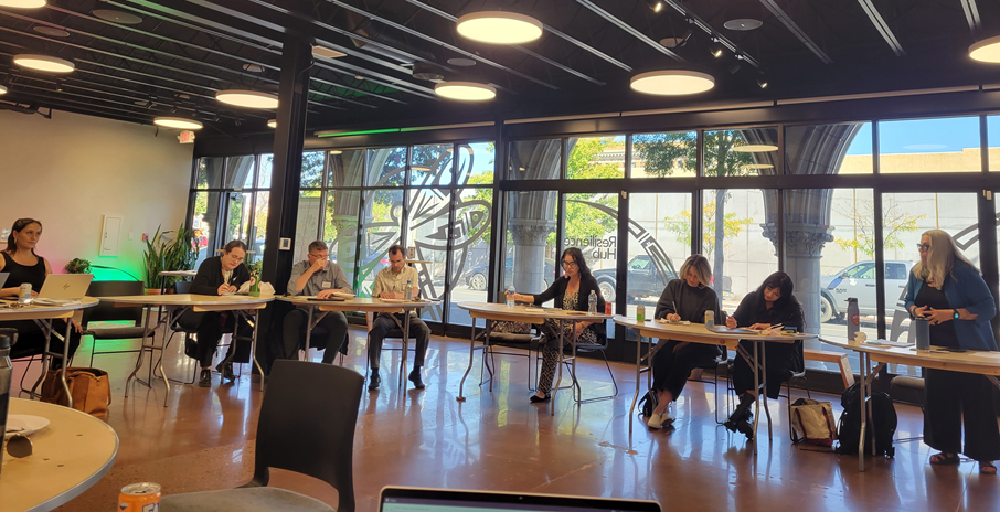 On Day 2, workshop attendees met at the Resilience Hub to review lessons learned highlights from Day 1 and discuss costs, permitting and regulations surrounding rainwater/greywater systems design and installation.